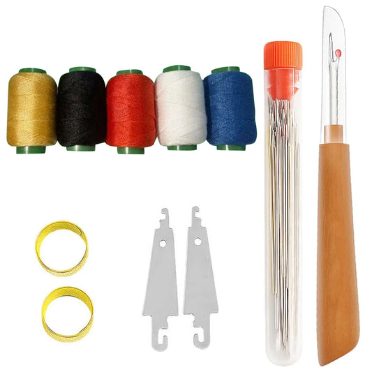 Leather Upholstery Repair Sewing Kit with 12 Colors Waxed Thread Heavy Duty Sewing Needles Awls for Shoes Sofa Carpet Repair