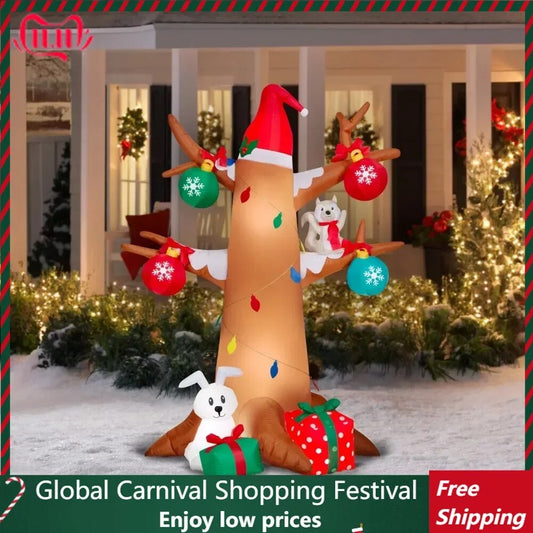 Airblown Inflatables Christmas 6 ft Winter Tree With Woodland Creatures Scene