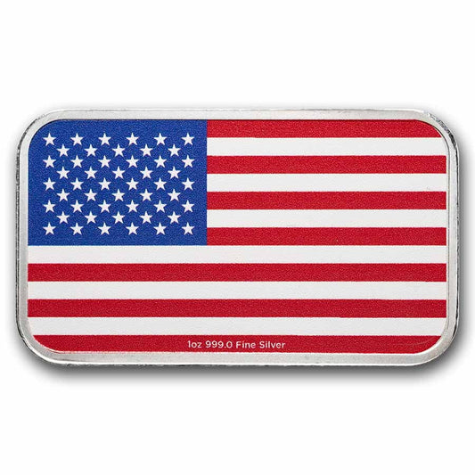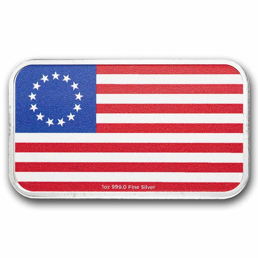 1 oz Silver Colorized Bar - Betsy Ross Flag