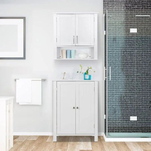 Bathroom Floor Storage Cabinet with Adjustable Shelf and Double Door Rust Proof