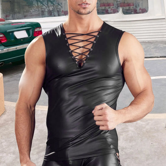 Mens Sexy Vest Performance Clothes Nightclub Stage Wear Pu Leather T Shirt Tights Tops For Men Loose Fit Plus Size Ropa Hombre