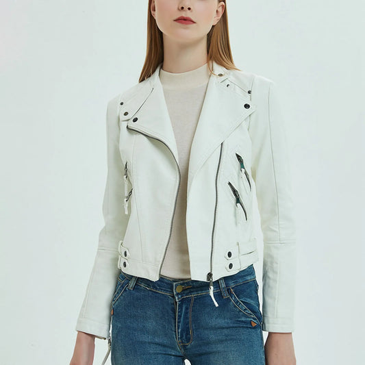 WoMen's Motorcycle Leather Jacket Zipper Casual Lapel Crop Coat High Street Short Leather Jackets Autumn Winter Fashion Tops