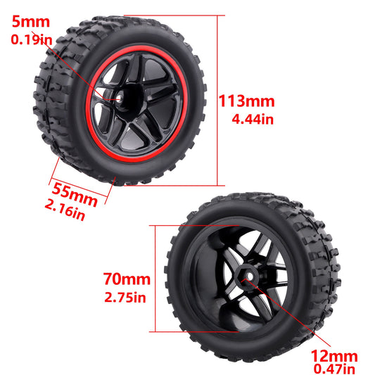 HobbyPark Glued 12mm Hex RC Truck Wheels Tires for 1/10 Traxxas Rustler 2wd 4x4
