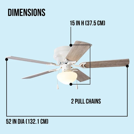 Mainstays 52 " Hugger Indoor Ceiling Fan with Light Kit, White, 5 Blades, Re
