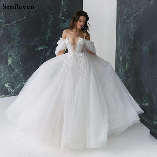 Smileven Princess Wedding Dress V Neck Ball Gown Puffy Tulle Bridal Dresses 202