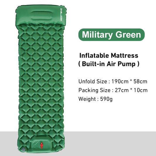 Outdoor Sleeping Pad Camping Inflatable Mattress Built-in Pump Ultralight Air C
