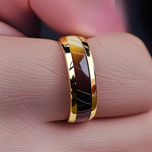 8MM Men's Fashion Abalone Shell Inlay Rings Gold Color Stainless Steel Rings Wedding Engagement Party Stainless Steel Jewelry