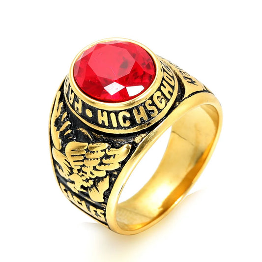 Retro Multicolor High Quality Gemstone Ring Punk US Army Navy Air Force Stainless Steel Eagle Ring Men Fashion Jewelry Wholesale