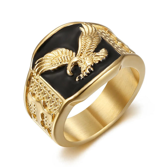 Domineering gold color stainless steel Eagle Rings for Men Classic Ring Hip Hop Rock Party Jewelry Gift