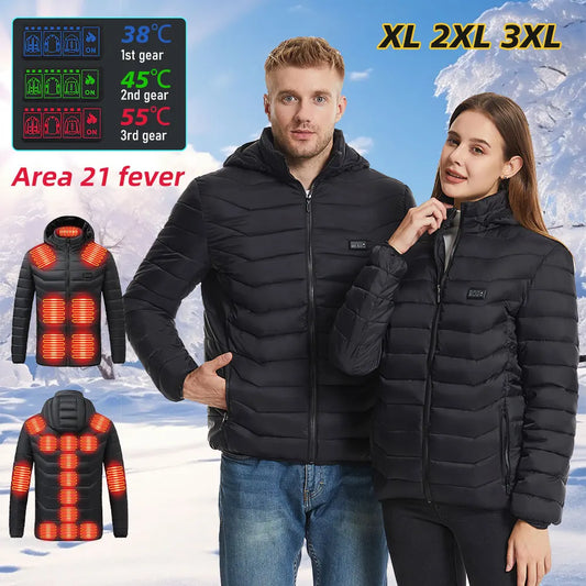 21 Areas Heating Jackets Smart Thermostat Pure Color Hooded Heated Clothing Winter USB Electric Heated Coat Self Heating Clothes