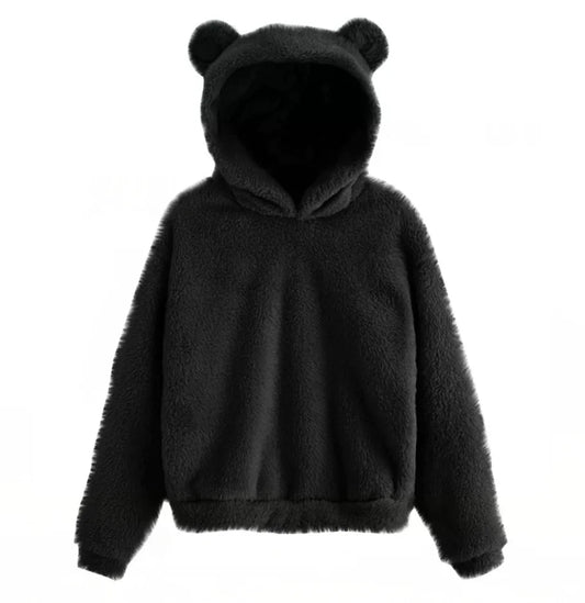 Autumn Winter Women's Hoodies Winter Women Long Sleeve Rabbit Ear Hood Sweatshirt Cute Plush Warm Casual Hoodie Tops