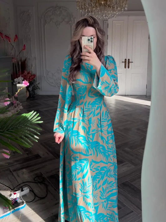 Muslim Women Dress Long Dresses Party Print Round Neck Long Sleeve Cas