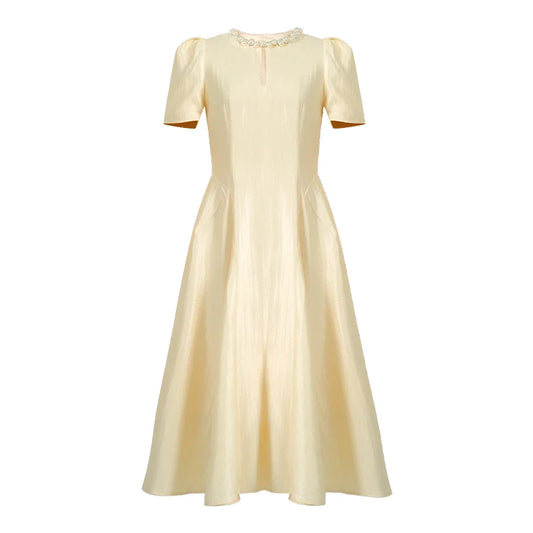 Women Summer Vintage Dress With Belt Short Sleeve V Neck Elegant Retro