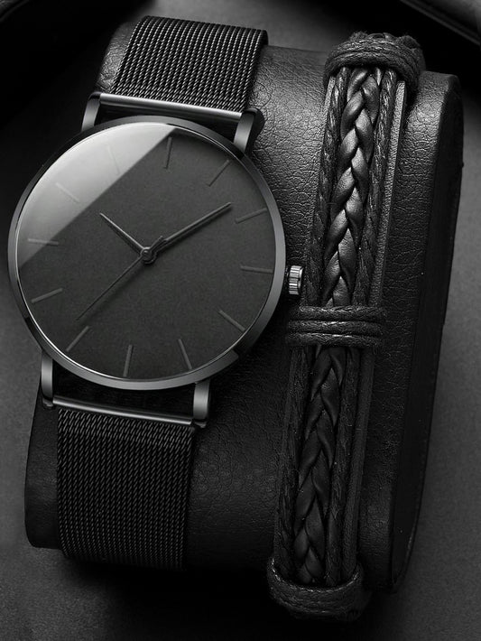 Watch + Bracelet Minimalist Men's Fashion Ultra Thin Watches Simple Men Busines