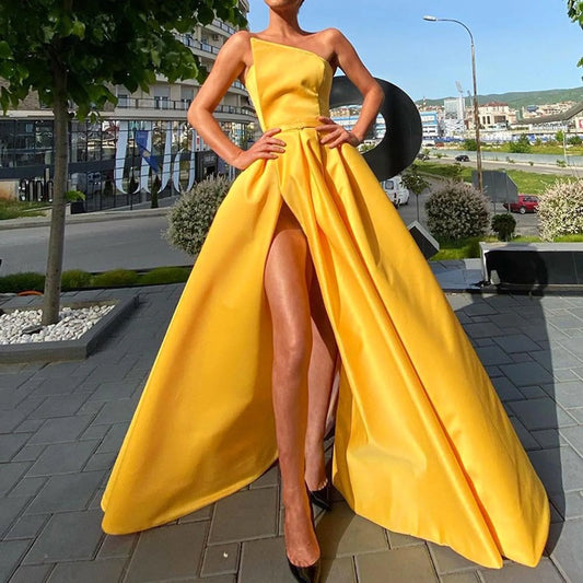 Ladies Satin A Line Prom Dresses Slim Fit One Shoulder Ruched Bridesma