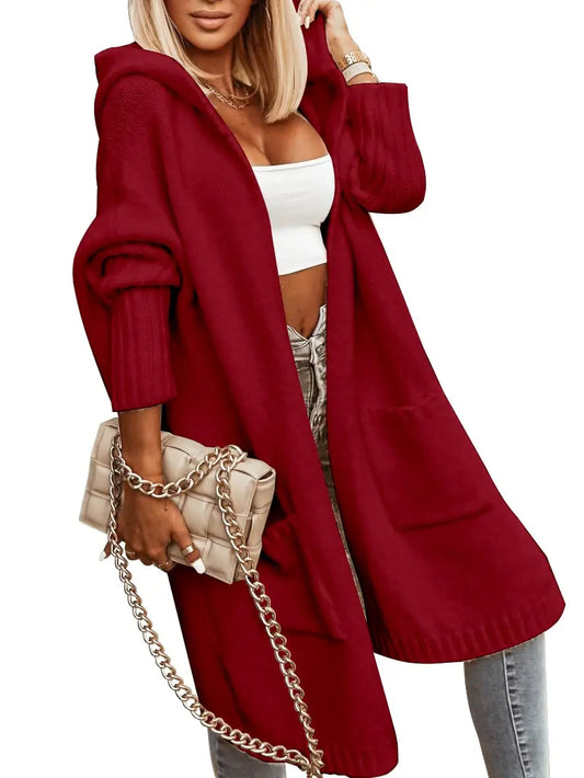 WoMen's Long Cardigans Cable Knitted Open Front Oversized Hooded Outerwear Sweater Coat
