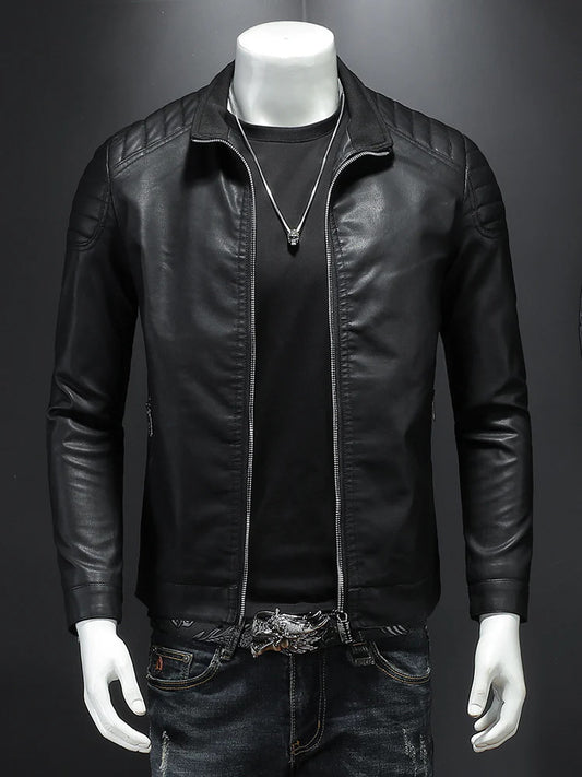 Light Weight Sports Coat For Men's Men'ss Jacket Stand Up Slim Leather Jacket Male