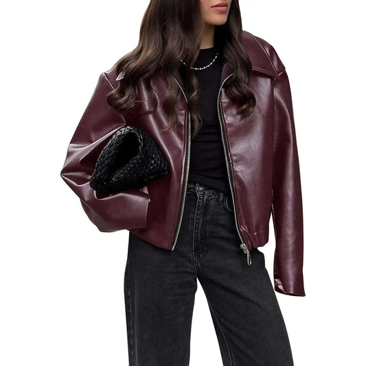 Leather Jacket Women's 2023 Autumn Spring Red Black Biker Jacket Ladies Commute Bo