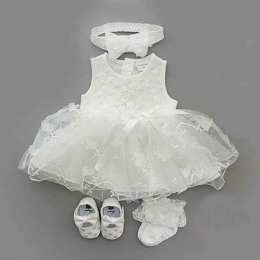4Pcs Baby Summer Dress Set for Infant Girls Christening Baptism Gown Wedding Pa