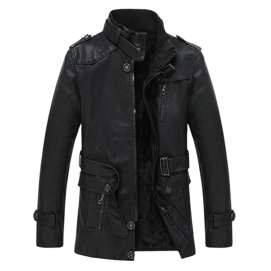 Men Fleece Lined PU Leather Jacket Autumn WInter Artificial Fur Long Sleeve Z