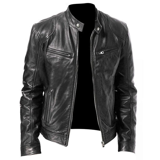 Motorcycle Equipment Men's Pu Leather Motorcycle Jacket Stand-up Collar Casual Leather Jacket Black Moto Racing Riding Jacket