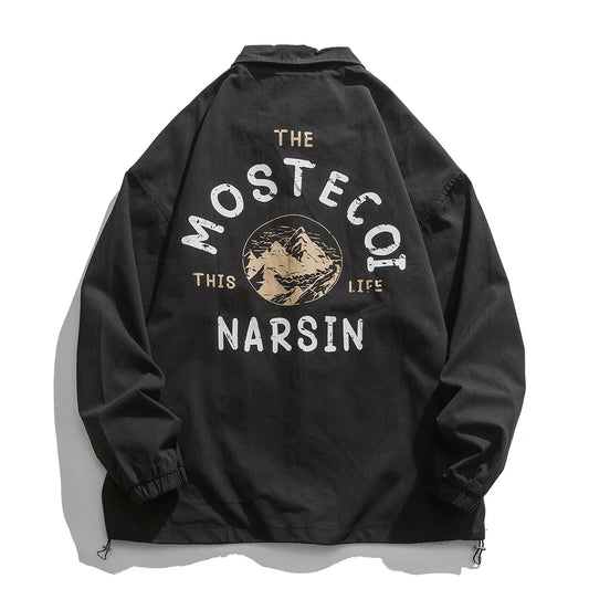 Japanese Retro Zipper Bomber Jacket Men Pilot Vintage Streetwear Lette