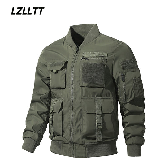 Spring Autumn New Multi-Pocket Bomber Jacket Men's Fashion Casual Windproof Pilo