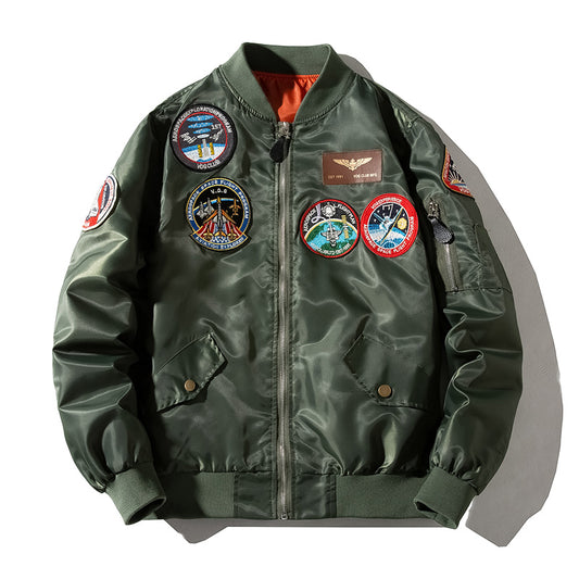 Air Force MA1 Pilot Cotton Jacket Men Double Sided Letter Embroidery Thicken Bo