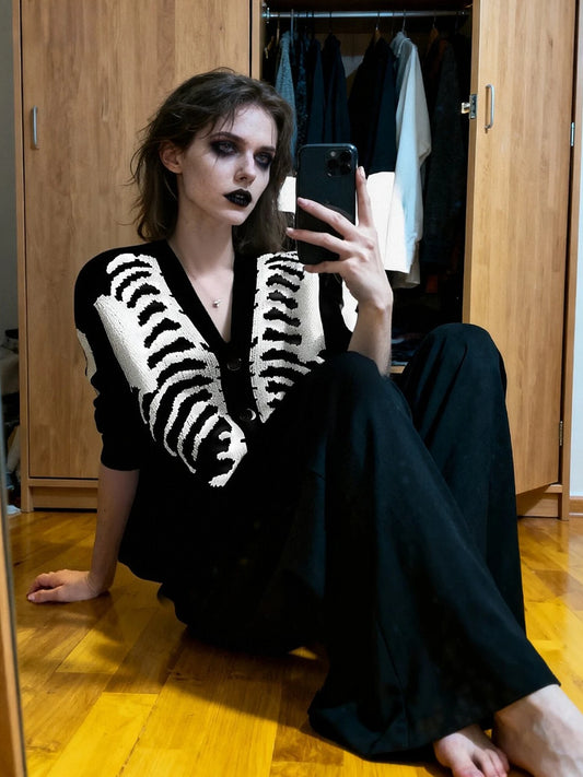 Black Sweaters for Women, Skull Pattern Knit Cardigan Sweaters, Oversized Sweaters, Halloween Fall Jackets for Unisex