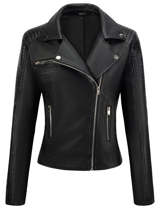 UR Women Faux Leather Jacket Black Motorcycle Moto Biker Short Coat