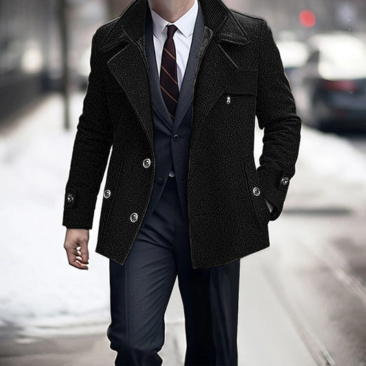 Classic Wool Blend Peacoat with Notched Lapel and Button Closure for Men's Winter Fashion Outerwear Warm Overcoat Coat
