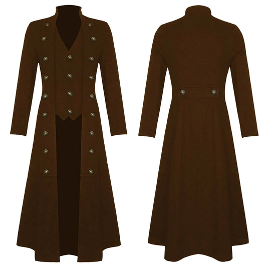 2024 New Men's Double-Breasted Halloween Cosplay Goth Vintage Solid Color Stand Up TrenCoat Denim Jacket Slim Chaquetas