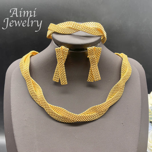 Simple 18K Gold Plated Jewelry Set for Women Golden Choker Necklace Drop Earrin