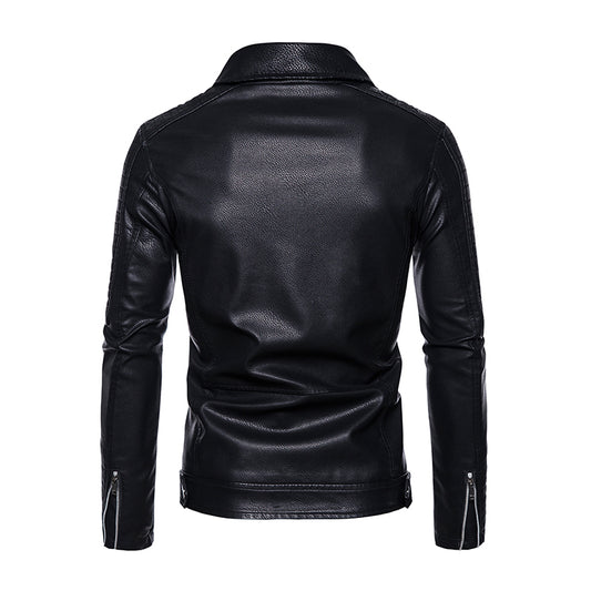 2023 Men's Fashion Leather Jacket Slim Fit Stand Collar PU Jacket Male Anti-wind