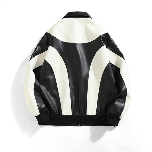 Spring and Autumn Men's Motorcycle Suit Leather jacket Color blocking American