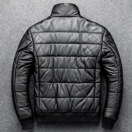 Sheepskin Jacket Top Layer Down Cotton Winter Warm Coat Stand Collar Real Leat