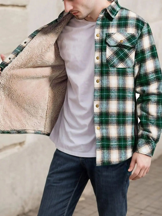 Men's Sherpa Lined Pocket Check Button Jacket