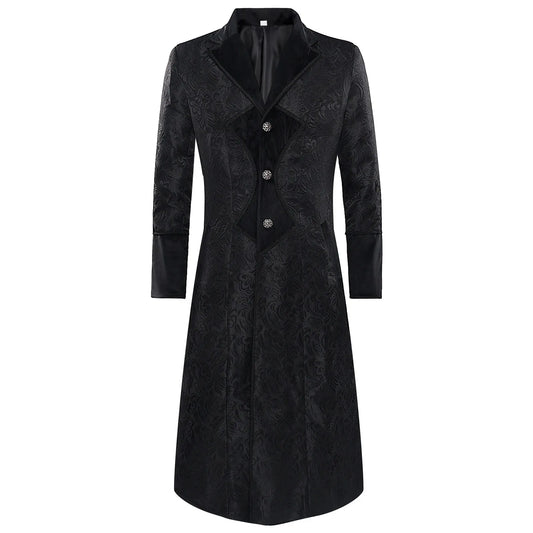 Autumn Winter Retro Print Woolen Coat Men Casual Single Breasted Lapel Long Sleeve Coat Men Fashion Loose Pocket Mid Long Jacket
