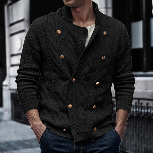Men's Double Breasted Cardigan Sweaters Slim Fit Casual Stand Collar Sweaters Knit Button Down Designed Outerwear Ropa Hombre