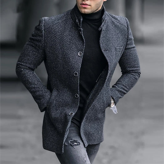 Winter Fashion Wool Blends Coats Men's Jackets Thick Long Sleeve Cardigan Coat Warm Stand Collar Fall Tide Casual Windbreaker
