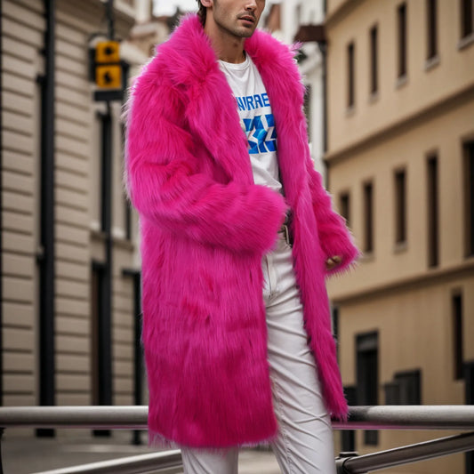 Men's Winter Warm Pink Leopard Print Coats Fashion Outdoor Wool Artificial Coat Men's Loose Fit Outdoor Casual Windbreaker