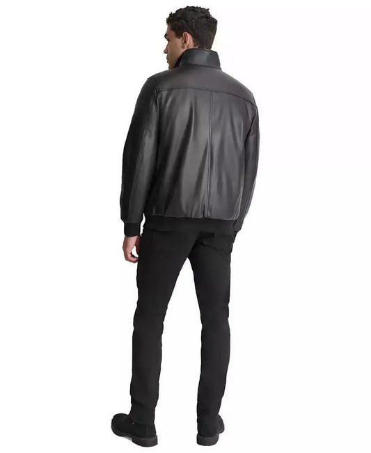 Men's Smooth Faux-Leather Bomber Jacket