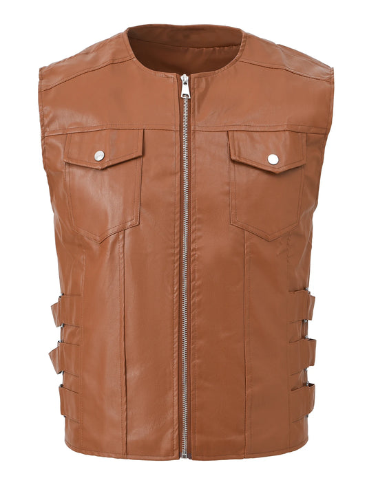 Men's Motorcycle Faux Leather Vest Sleeveless Style Coat Collarless Fashion Rock Waistcoat Halloween Jacket