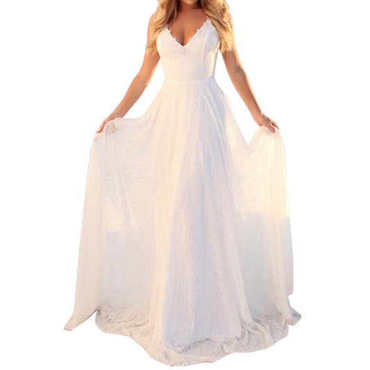 Sleeveless White Lace Dresses Women'spaghetti Strap Bohemian BeaDresses