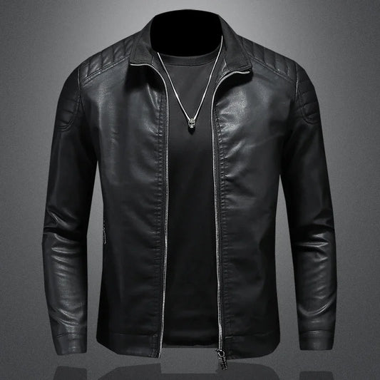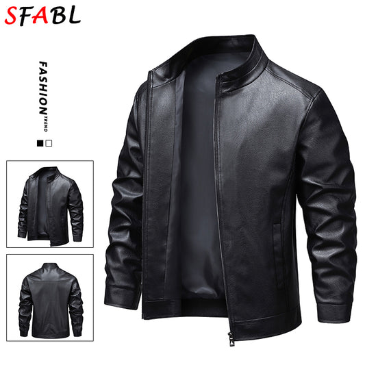 2024 Men's Fashion Leather Jacket Slim Fit Stand Collar PU Jacket Male Anti-wind