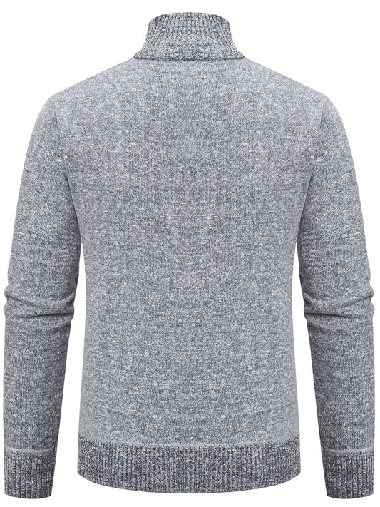 Men Knit Sweater Cardigan, Zipper Stand-Up Collar Sweater Jacket, Regular Fit