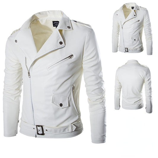 Spring Motorcycle Jacket Men Turn Down Collar Casual Leather Jacket Fashion Sli