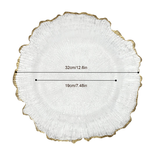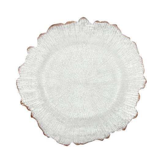25 Pack 13 Inch Clear Plastic Reef Rim Charger Plates with Gold Rim, Round Decorative Underplates for Wedding, Party, Dinner