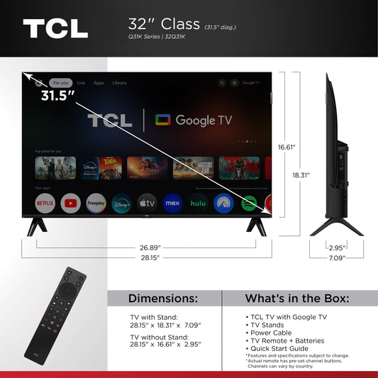 TCL 32" Q31K Series QLED 1080P FHD Smart Google TV (NEW 2025) - 32Q31K