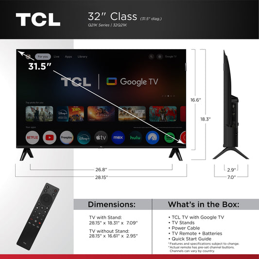 TCL 32" Q21K Series (NEW 2025) 720P HD QLED Smart TV with Google TV – 32Q21K